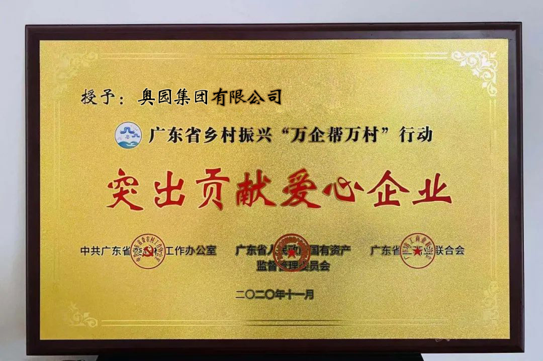 中國奧園集團以“幫助更多需要幫助的人”為目標,以“愛心你我,傳遞溫暖”為宗旨,多年來持續為公益慈善事業貢獻奧園力量,先后榮獲人民日報社、人民網“人民企業社會責任年度扶貧獎”,獲評“2020年度扶貧企業”、廣東省鄉村振興“萬企幫萬村”行動突出貢獻愛心企業等殊榮。