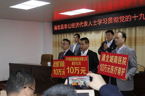 (2017年11月23日——浦北)11月23日,浦北奧園廣場有限公司積極響應浦北縣委統戰部、工商聯的號召,踴躍捐資10萬元,愛心溫暖浦北。浦北奧園廣場一直心系浦北的貧困群眾,希望通過實際行動影響到更多人、更多企業參與到扶貧工作中來,讓貧困群眾早日脫貧。