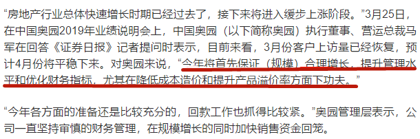 雖然融資成本這塊不是奧園的優勢之一,但好在持續優化,而且融資渠道暢通。而業內認為最主要還是周轉,如果融資成本高一點但周轉快的話,其實影響并不大。