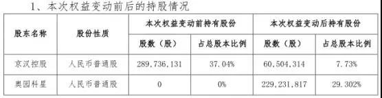 5月18日,根據京漢股份的公告,中國奧園旗下控股公司對京漢股份的收購塵埃落定——公司控股股東京漢控股集團有限公司(下稱“京漢控股”)、實際控制人田漢與深圳奧園科星投資有限公司(下稱“奧園科星”)簽署了《股份轉讓協議》,京漢控股將其持有的公司2.29億股無限售流通股(占公司總股本的29.3%)轉讓給奧園科星。而此前披露的數據是,京漢股份共計持有18個項目,現有已確權的總可售建筑面積約123.7萬平方米。
