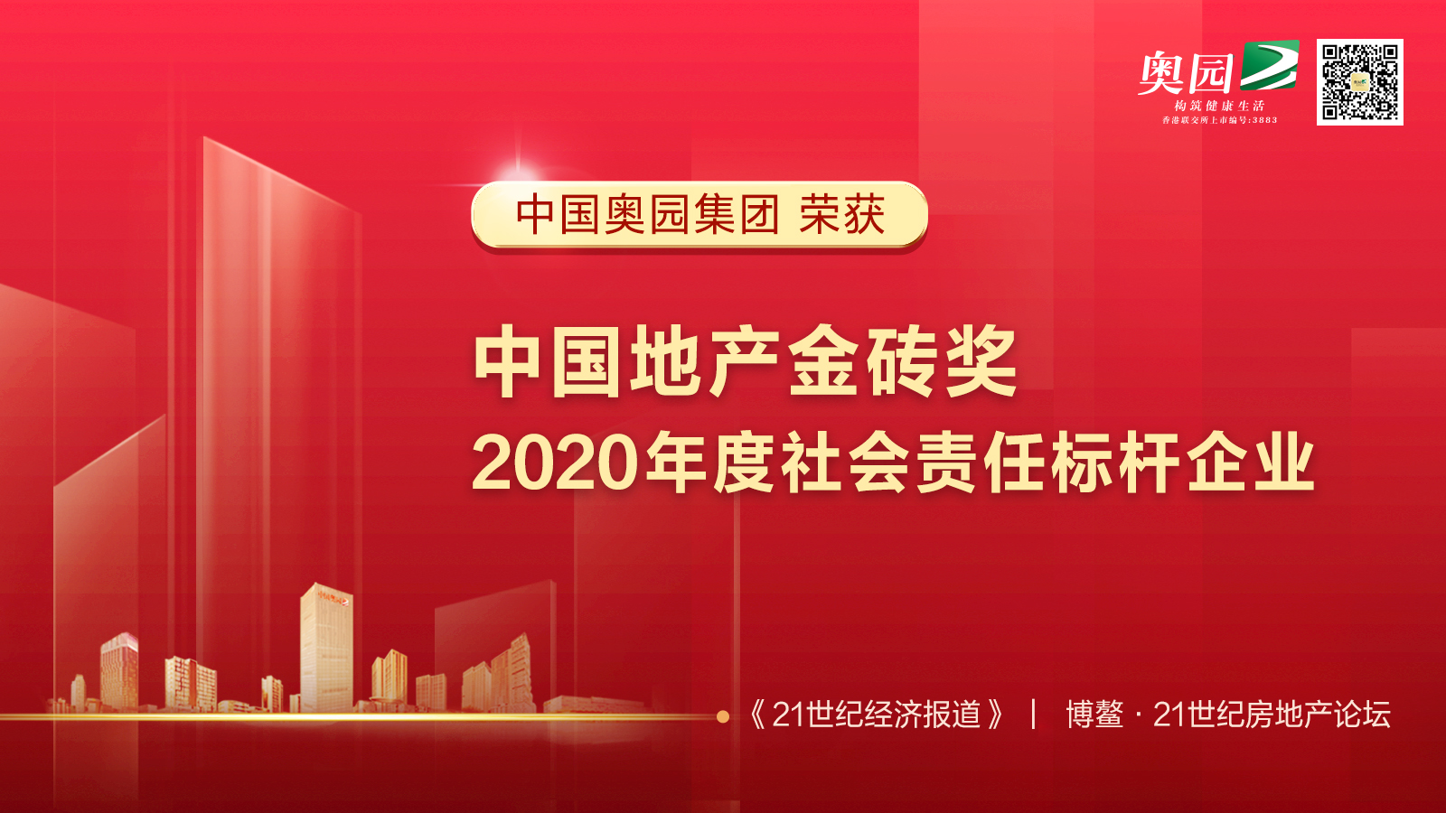 責任賦能企業發展 中國奧園榮膺 “2020年度中國地產金磚獎”