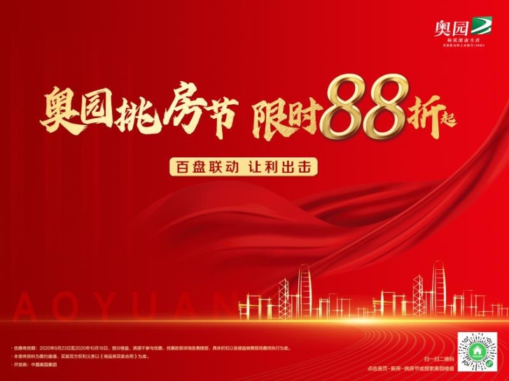 中秋國(guó)慶雙節(jié)假期,中國(guó)奧園強(qiáng)勢(shì)推出“奧園挑房節(jié)·限時(shí)88折起”活動(dòng),精心挑選旗下近300套優(yōu)質(zhì)房源,覆蓋北京、廣州、深圳、東莞等20個(gè)重點(diǎn)城市。活動(dòng)期間,中國(guó)奧園旗下諸多精品項(xiàng)目為客戶提供88折起的購(gòu)房?jī)?yōu)惠。到訪、成交項(xiàng)目后能享有多重禮。