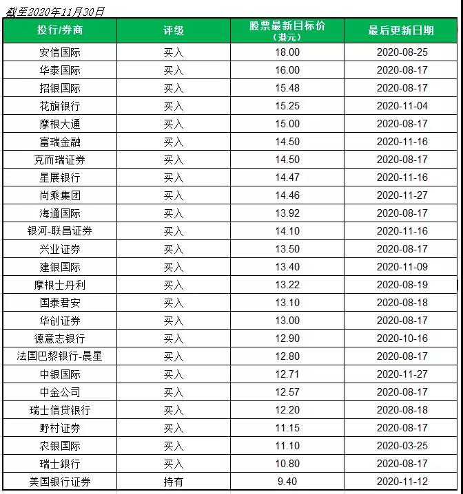 奧園2020年前10個月合同銷售同比增11%至985.1億元,已完成全年目標約75%;加上可售資源充裕,去化率穩定,富瑞金融、星展銀行、銀河-聯昌證券等認為,奧園全年銷售目標完成無懸念。