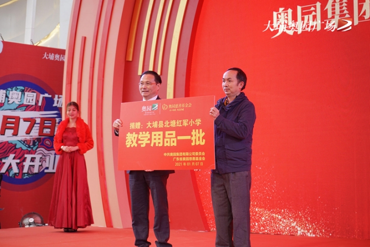 大埔縣委書記朱漢東、縣長熊鋒松、縣人大常委會主任黃建庭,奧園集團黨委書記、總裁郭梓寧,奧園商業(yè)地產(chǎn)集團副總裁尹立鵬,奧園健康生活集團常務(wù)副總裁雷易群等領(lǐng)導(dǎo)嘉賓共同出席典禮。慶典上,奧園集團黨委給結(jié)對幫扶的大埔縣紅軍小學(xué)捐贈了一批教學(xué)設(shè)備,并為貧困生頒發(fā)了助學(xué)金。