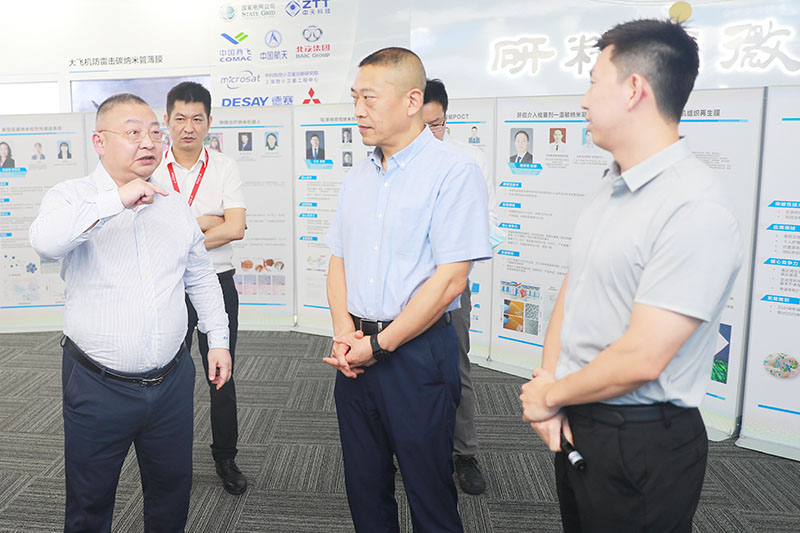 胡冉總(左)為楊景總(中)介紹納米項目合作進展
