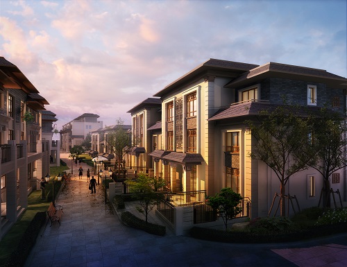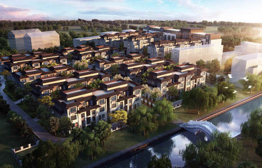 項目總體規劃82戶純別墅,分為10幢聯排,3幢疊加及1幢外圍商業。采用新中式建筑風格,彰顯了傳統文化精髓中典雅端莊的氣質,傳統文化所崇尚的藝術規律,秩序均衡;與項目周邊深厚的歷史底蘊、景觀資源相呼應,不僅滿足了人們對歷史的溫情,對浪漫的情懷,而且從視覺、質感、情智等功能方式賦予人們更加雅致的生活。